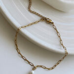 • Βραχιόλι ποδιού με ατσάλινη αλυσίδα κ κρεμαστό μαργαριτάρι γλυκού νερού