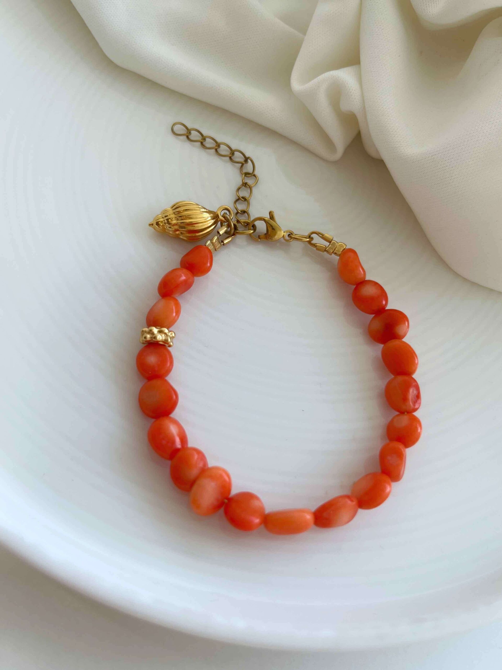 • Βραχιόλι από ημιπολύτιμες πέτρες κοράλλια κ επιχρυσωμένα ορειχάλκινα στοιχεία