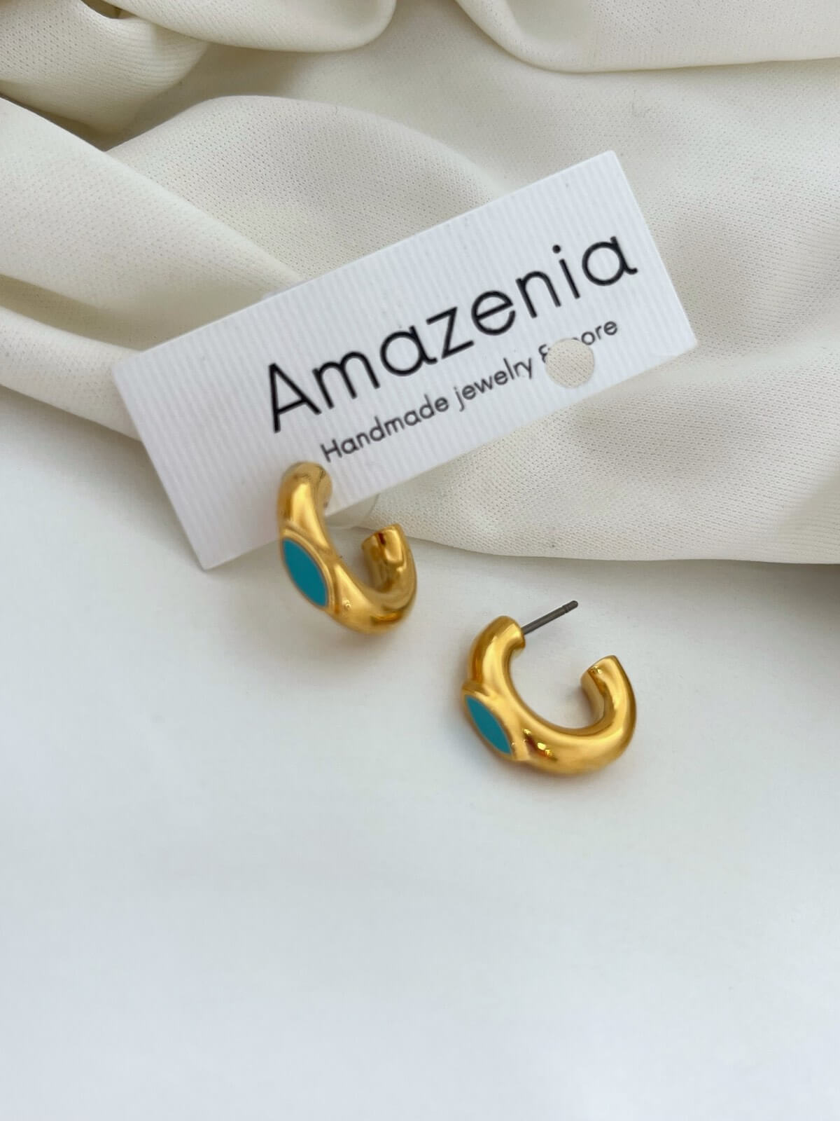 • Σκουλαρίκια από ορείχαλκο επιχρυσωμένα με turquoise σμάλτο