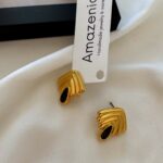 • Σκουλαρίκια από ορείχαλκο επιχρυσωμένα με 24Κ κ μαύρο σμάλτο
