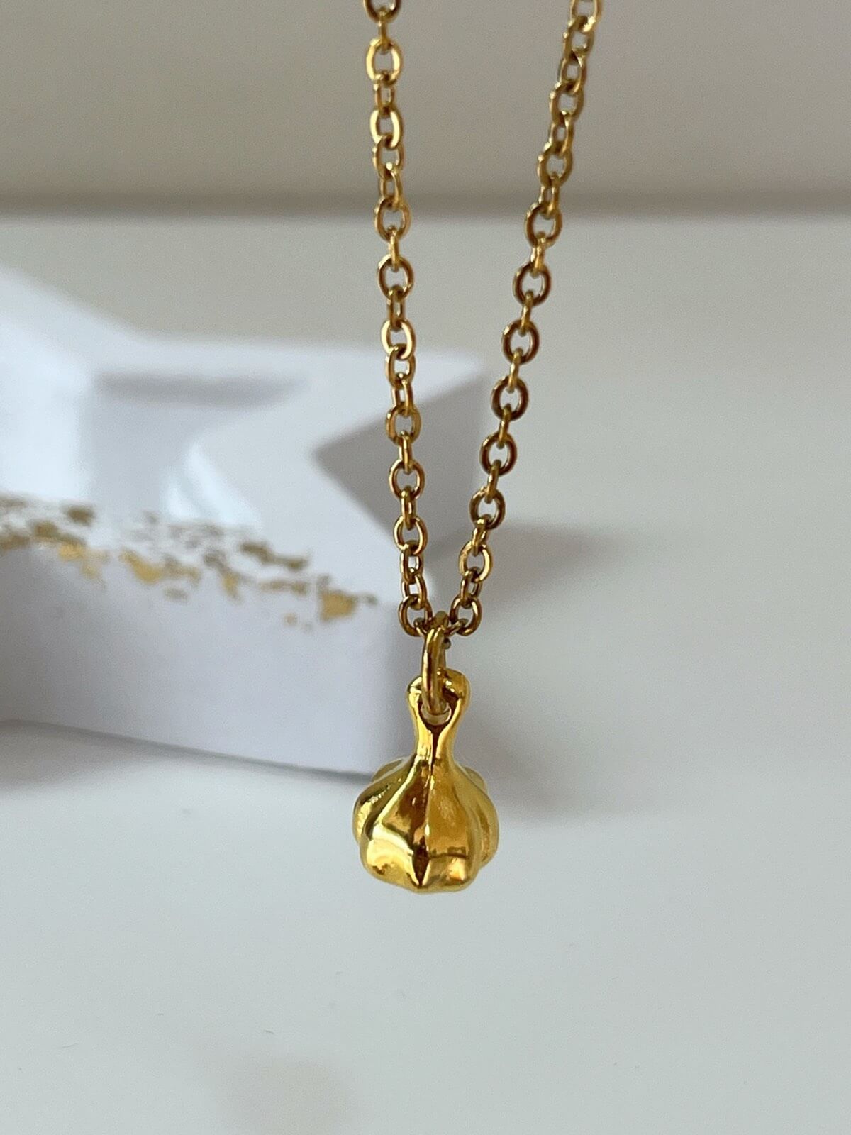 • Κολιέ με ατσάλινη αλυσίδα κ επιχρυσωμένο με 24Κ σκορδάκι από ορείχαλκο