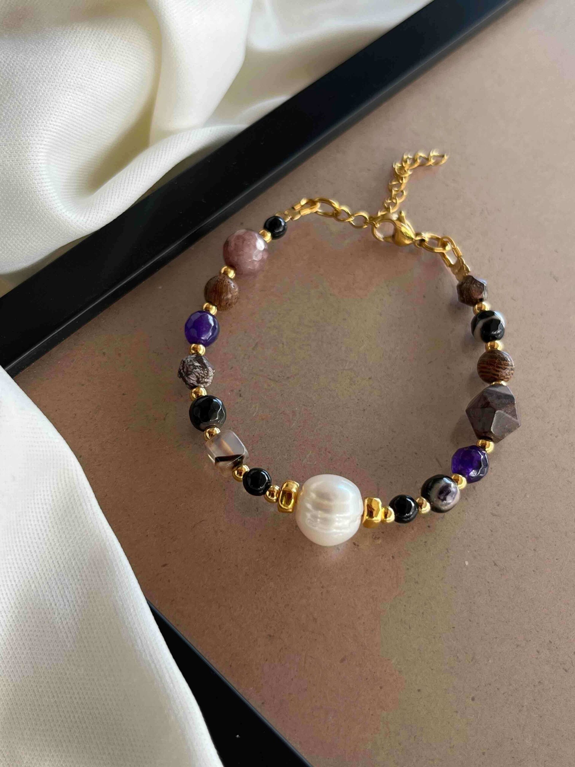 • Βραχιόλι με ημιπολύτιμες πέτρες κ επιχρυσωμένα στοιχεία