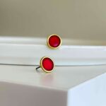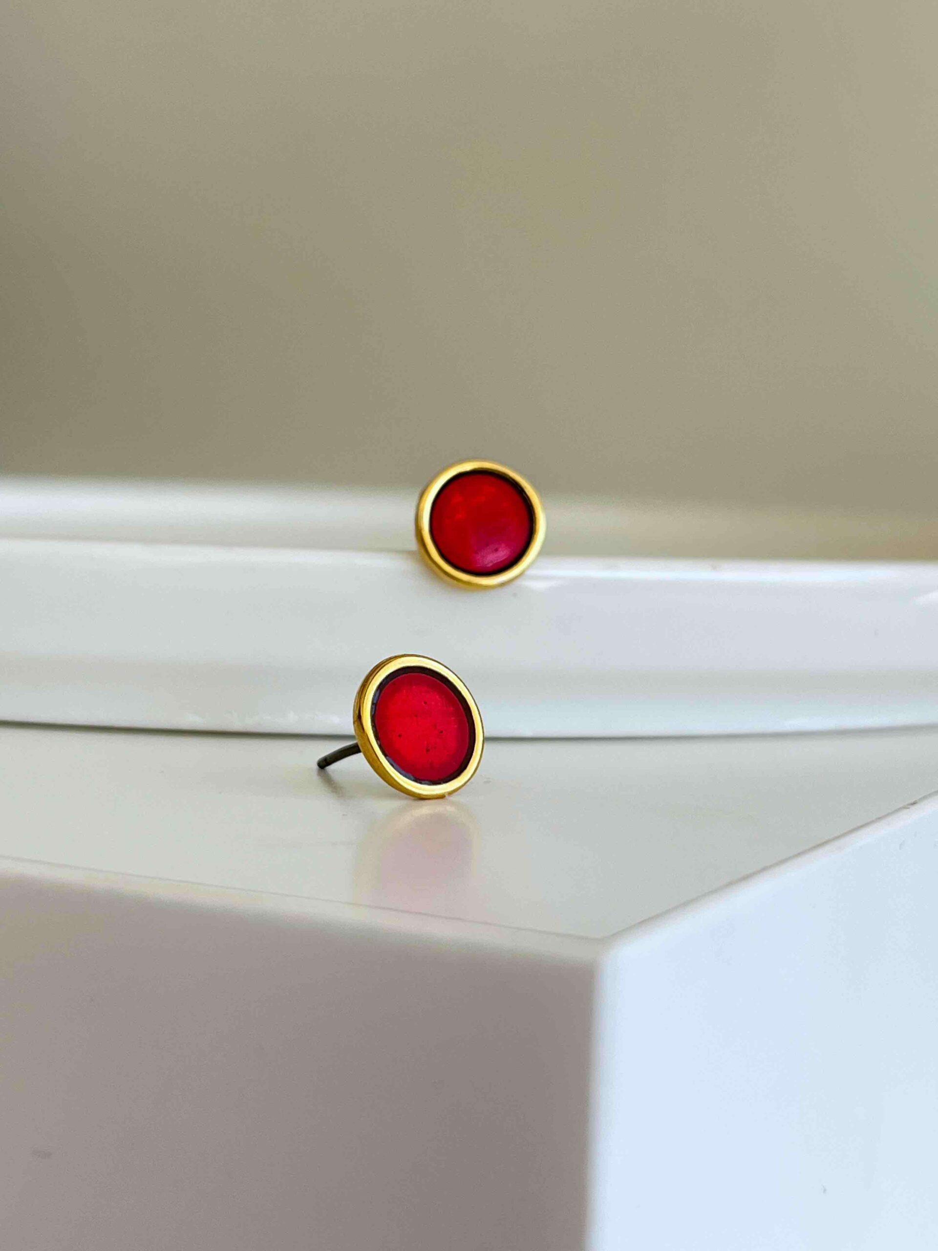 • Σκουλαρίκια από επιχρυσωμένο ορείχαλκο με μπορντώ σμάλτο