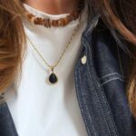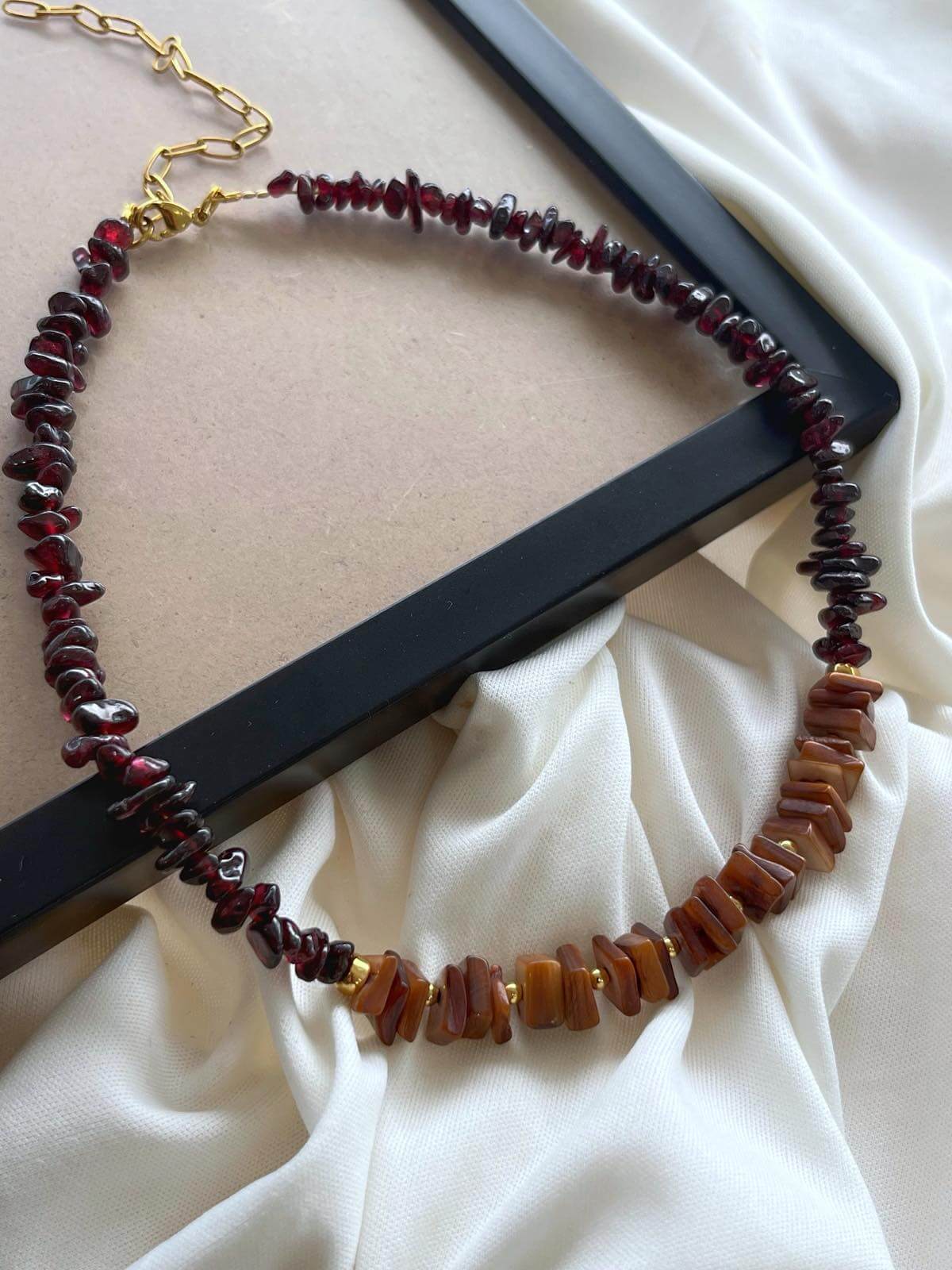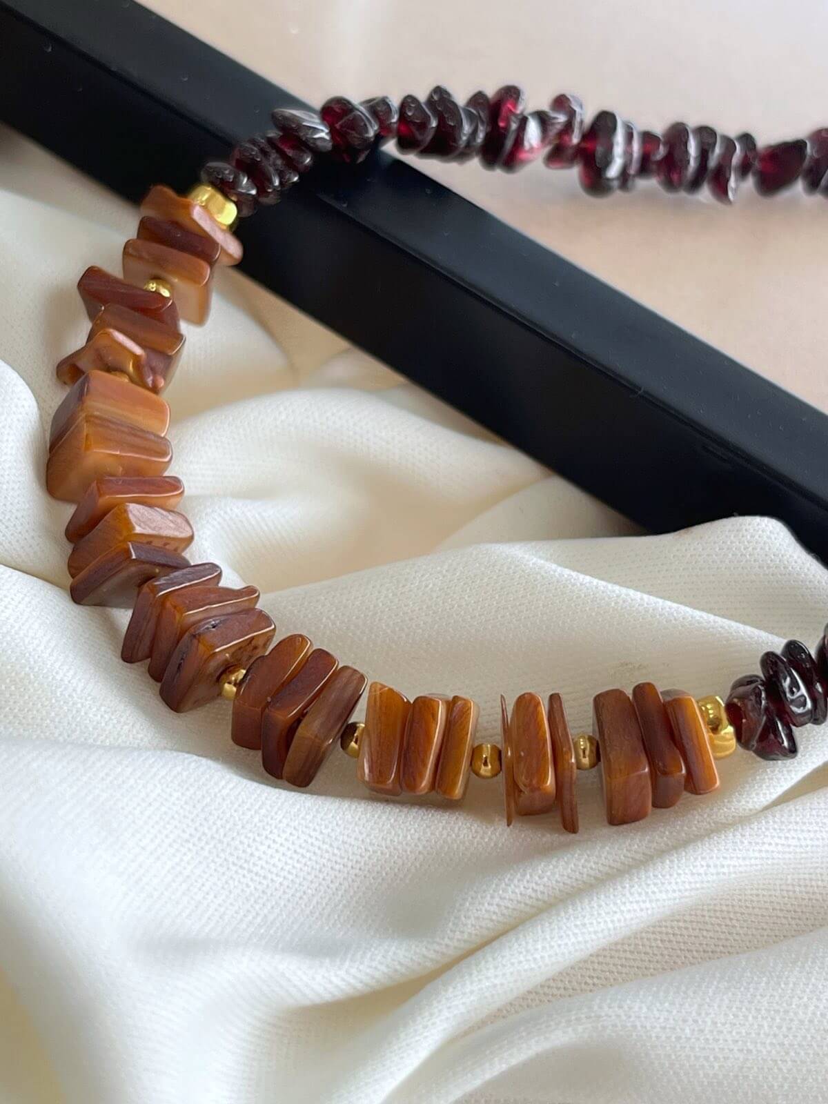 • Κολιέ από ημιπολύτιμες πέτρες κ επιχρυσωμένα στοιχεία από ορείχαλκο