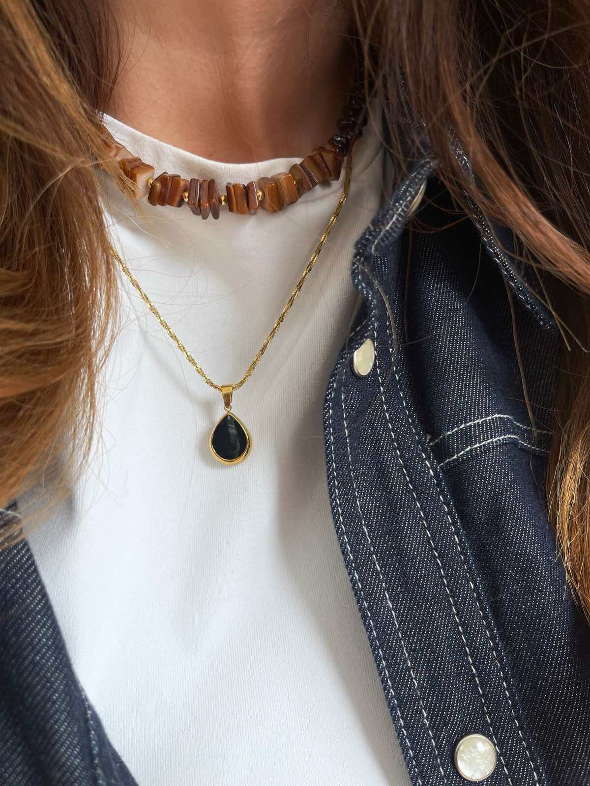 • Κολιέ με ατσάλινη αλυσίδα κ ατσάλινο στοιχείο μαύρος όνυχας