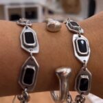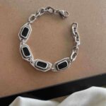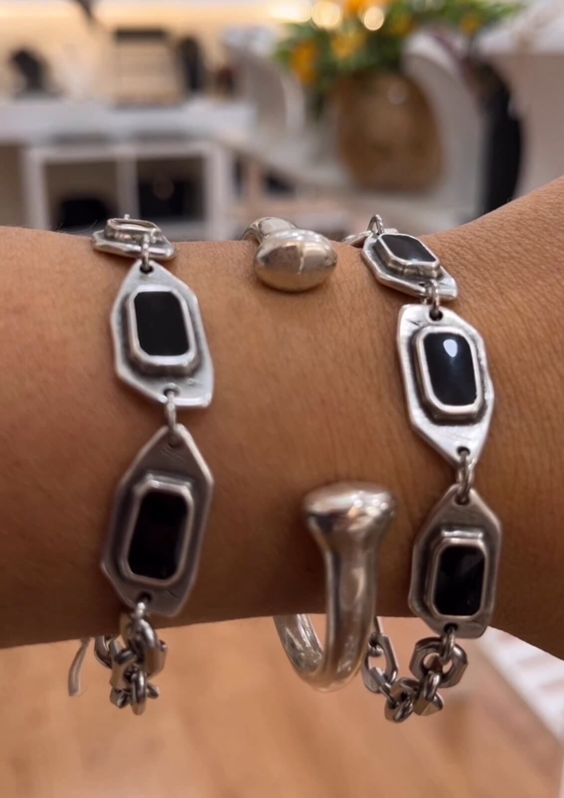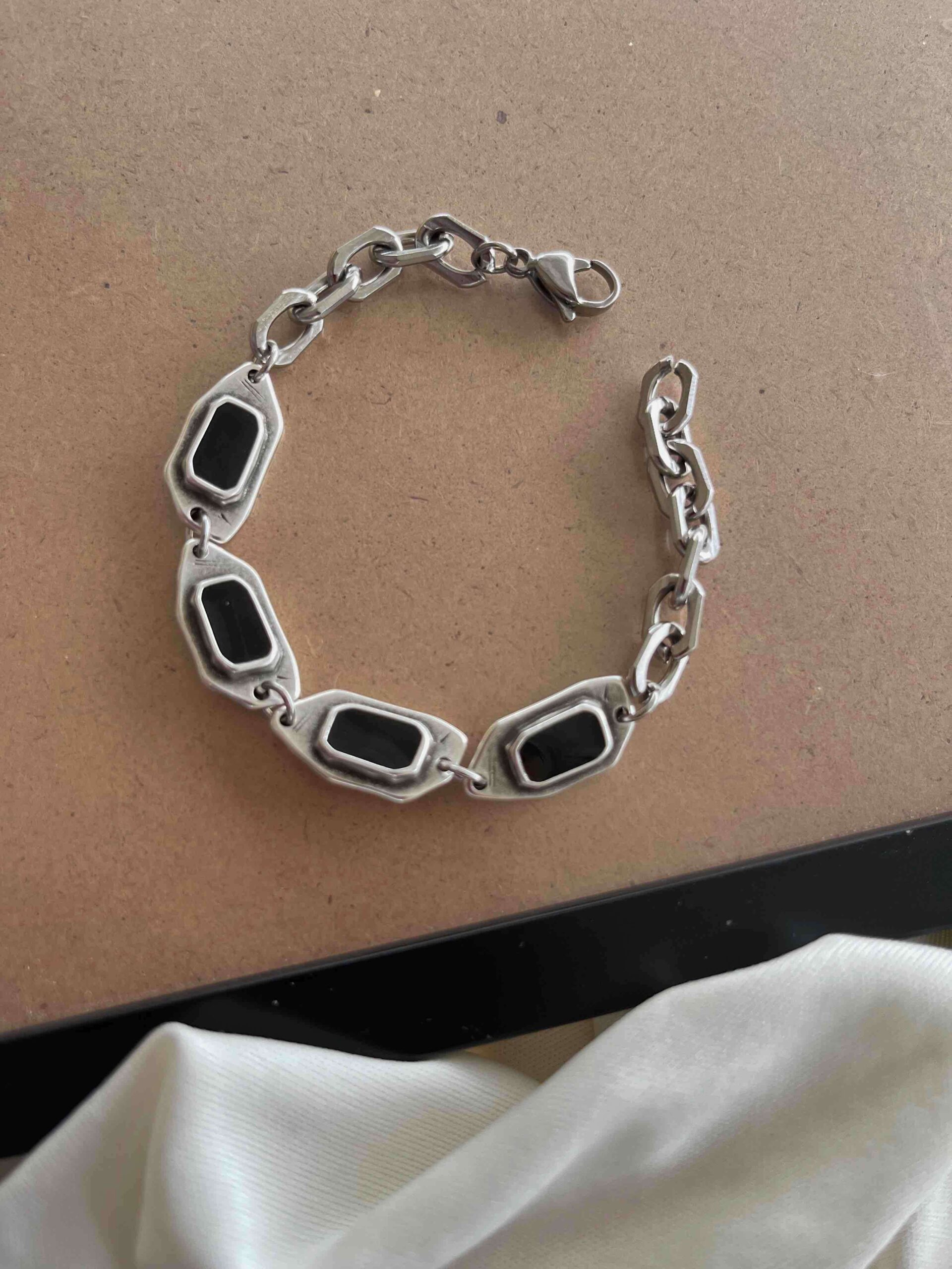 • Βραχιόλι με ατσάλινη αλυσίδα κ στοιχεία με μαύρο σμάλτο από ορείχαλκο επαργυρωμένα με ασήμι