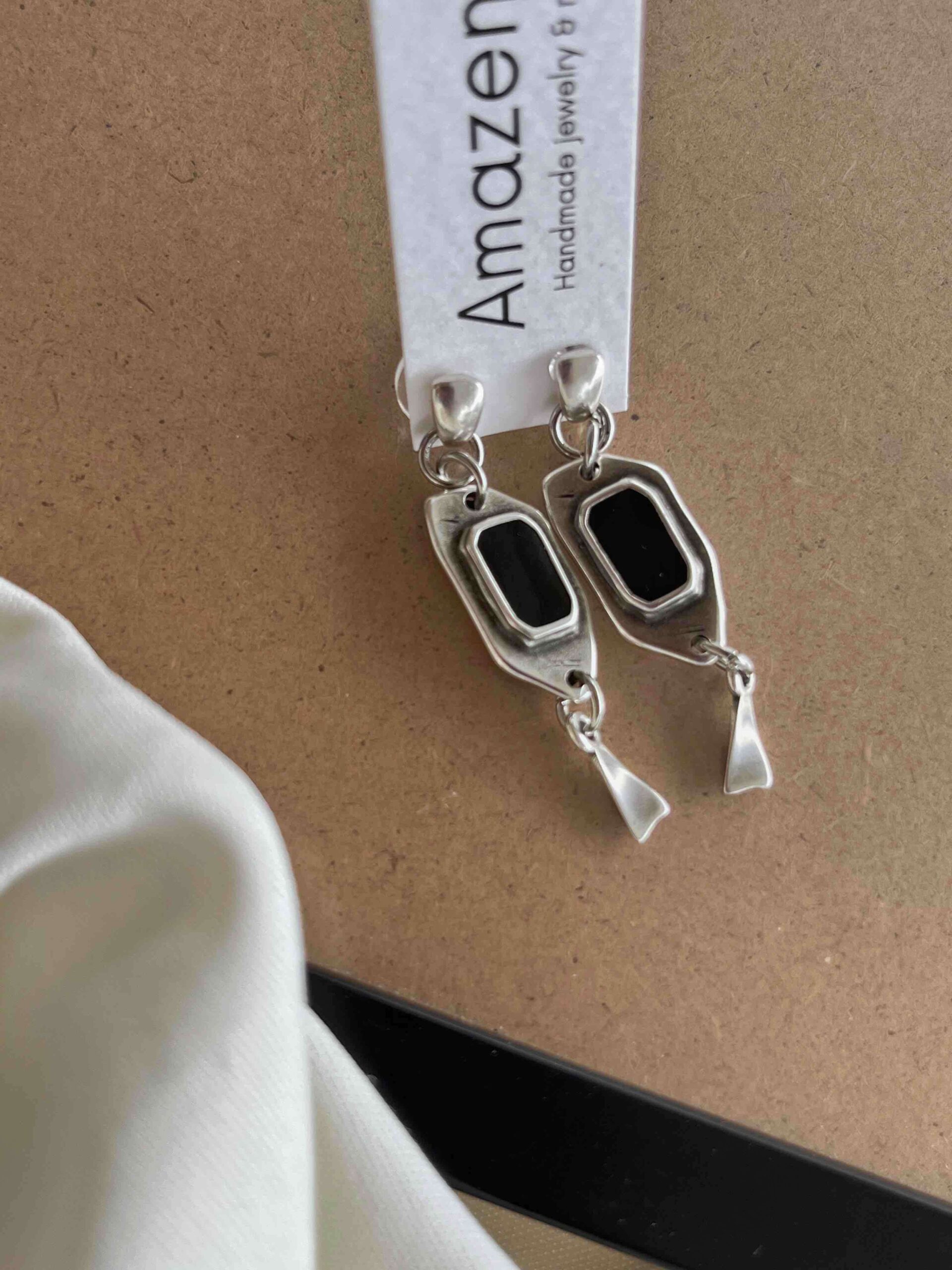 • Σκουλαρίκια από ορείχαλκο επαργυρωμένα με ασήμι κ μαύρο σμάλτο