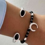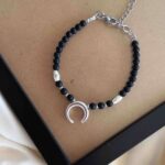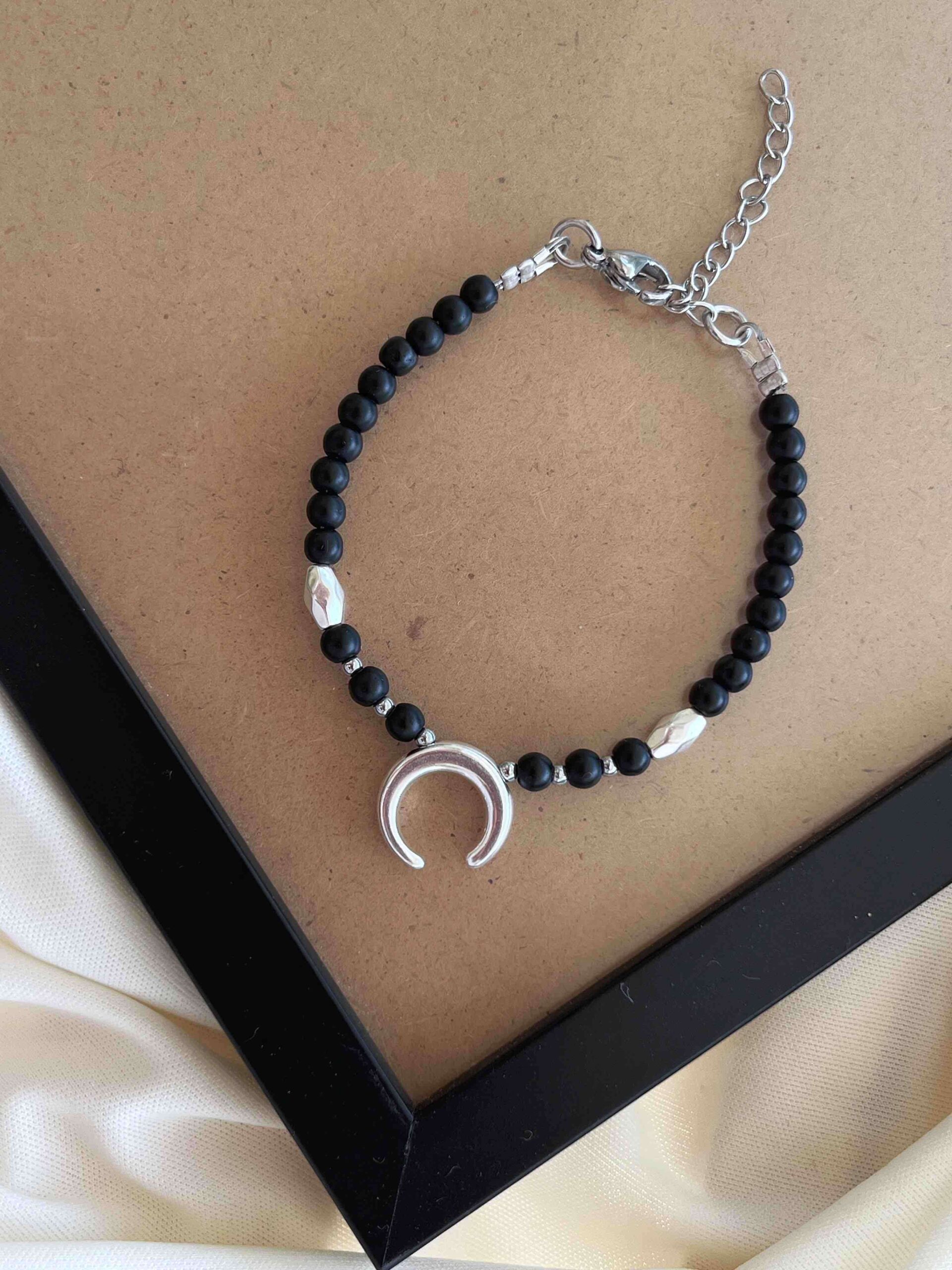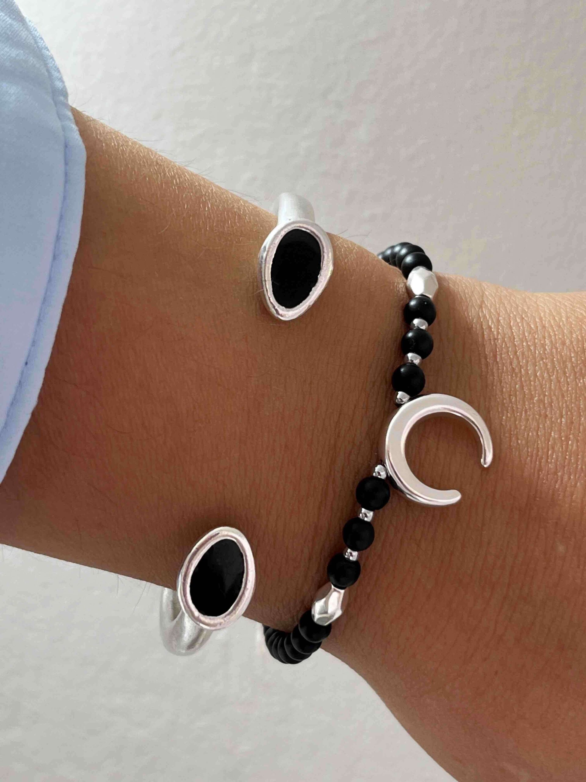 • Βραχιόλι με μαύρες ματ χάντρες κ επαργυρωμένα στοιχεία από ορείχαλκο