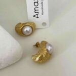 • Ατσάλινα σφυρήλατα σκουλαρίκια με πέρλα