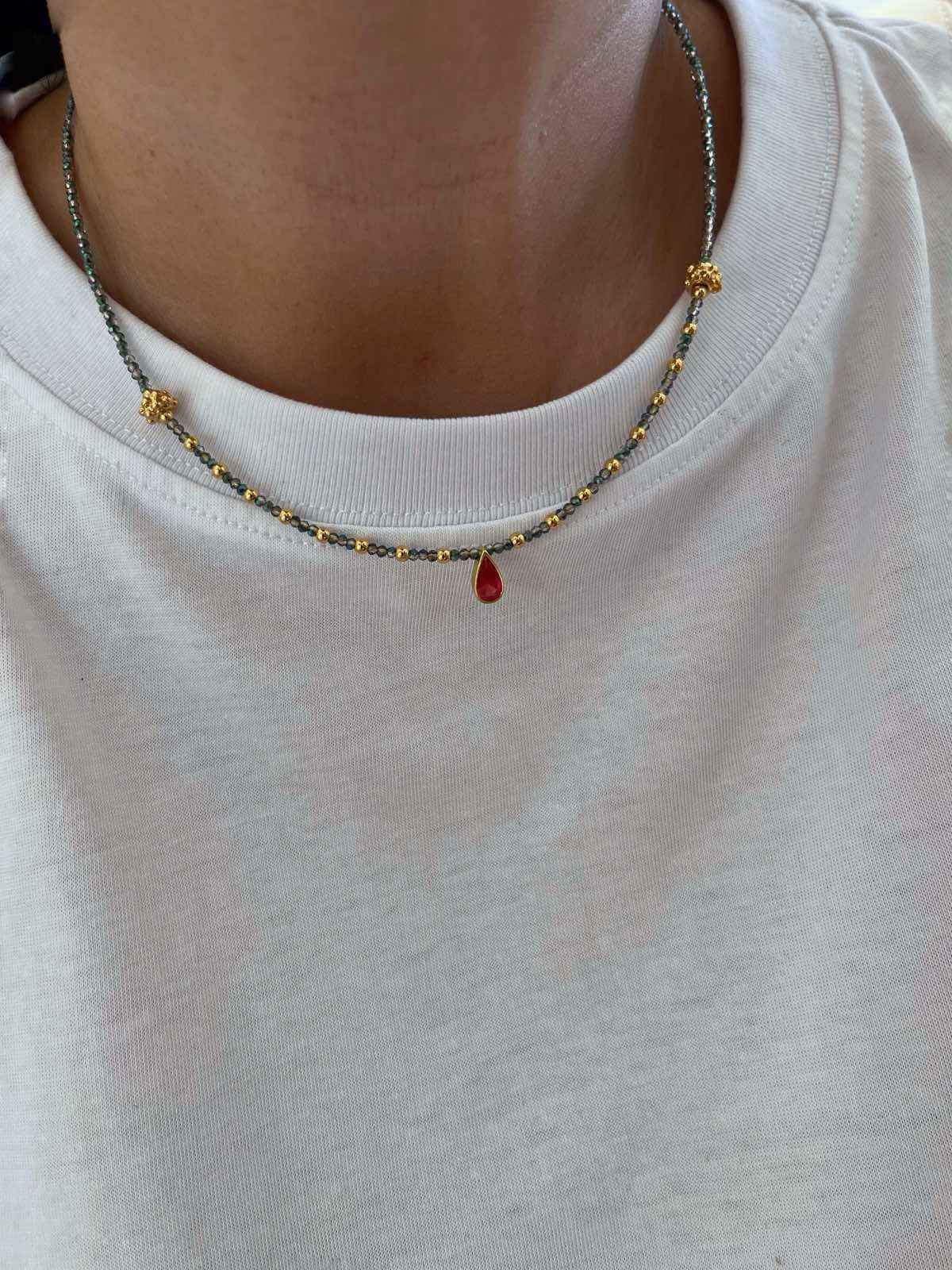 • Κολιέ με χακί κρυσταλλάκια κ επιχρυσωμένα στοιχεία από ορείχαλκο